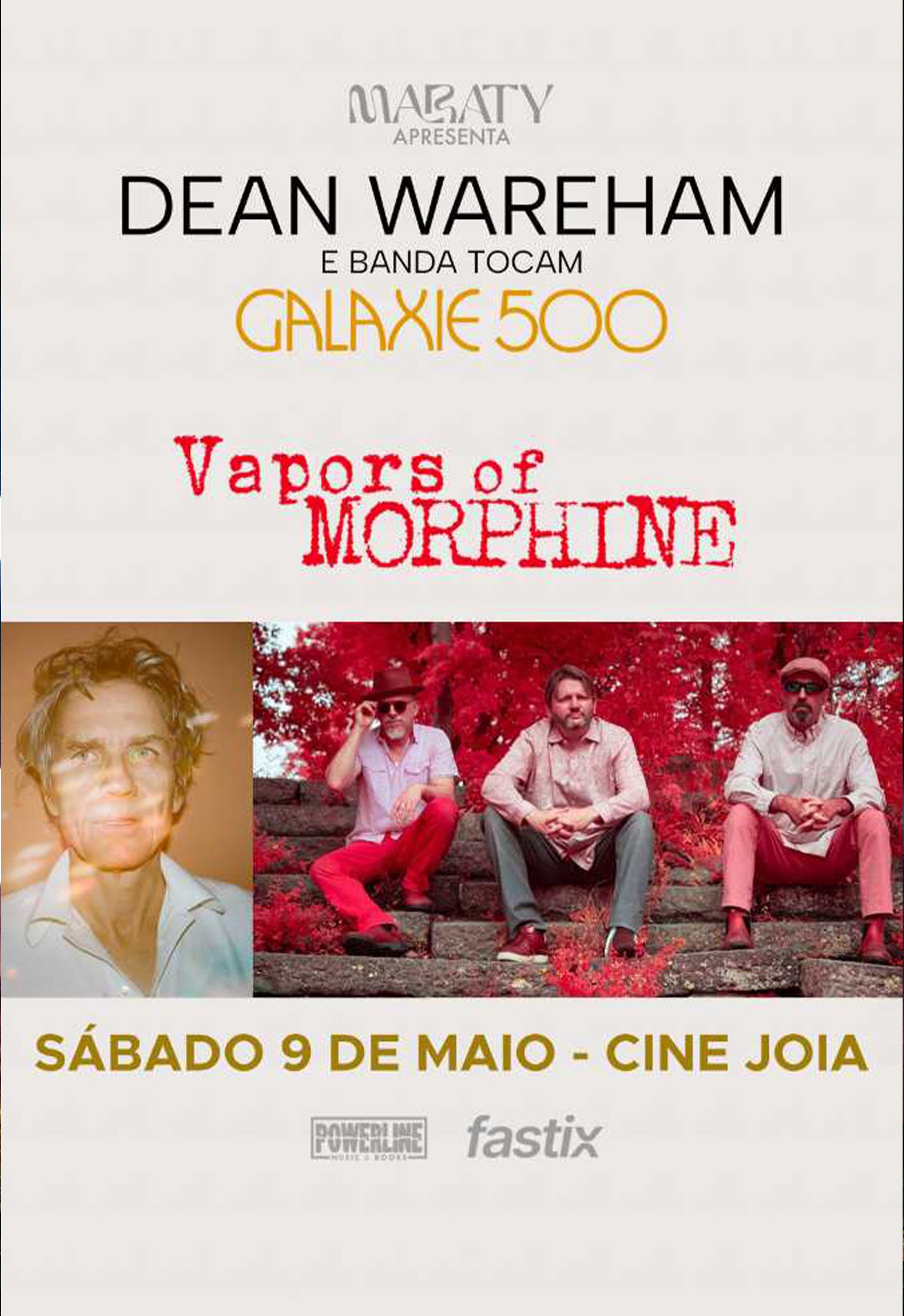 São Paulo/SP recebe no dia 9 de maio (sábado), no Cine Joia, um encontro de duas trajetórias fundamentais do rock alternativo norte-americano. Vapors of Morphine, o legado do lendário Morphine e Dean Wareham, em um set especial dedicado ao Galaxie 500. A produção é da Maraty e os ingressos estão à venda no site da Fastix.